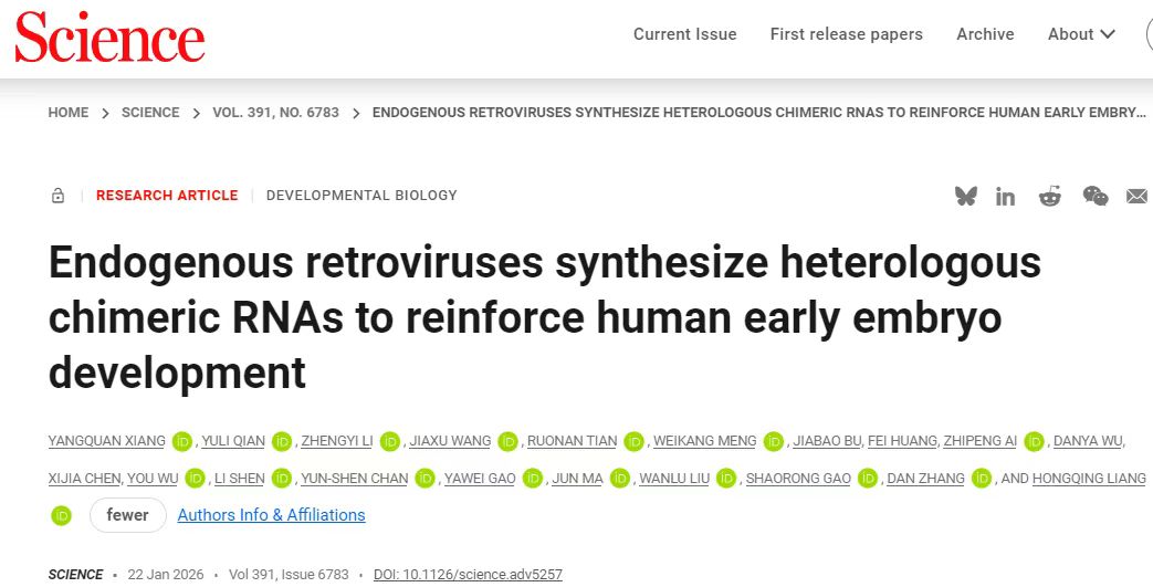 在生命最初的旅程中,一个受精卵需要经历一系列精密而复杂的发育阶段,才能最终成长为一个完整的个体。然而,在辅助生殖过程中,许多胚胎在植入子宫前就停止了发育,尤其在8细胞期(8C)阶段,这一发育阻滞现象成为生殖医学领域长期未解的难题。如今,这一难题有了关键线索!北京时间1月23日凌晨,浙江大学基础医学院/浙江大学医学院附属妇产科医院研究员、长聘副教授梁洪青,浙江...