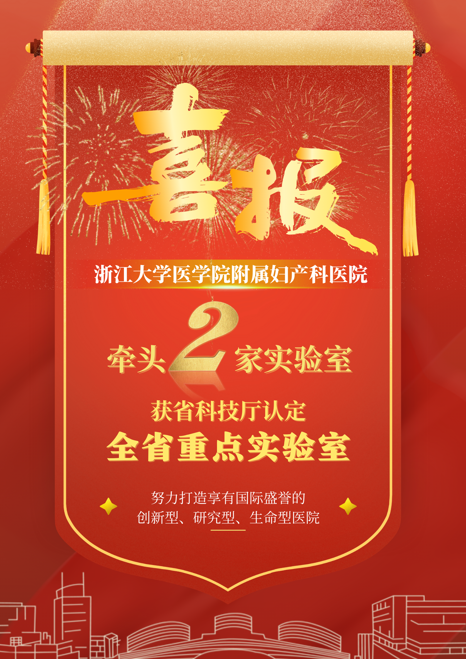 为落实省委、省政府决策部署,整合力量打造科技创新平台,加强科技基础能力建设,提升基础研究和原始创新能力,支撑构建现代化产业体系,根据《全省重点实验室管理办法》(浙科发基〔2023〕40号)规定,经浙江省科技厅组织评审和论证,认定我院“全省母婴安全研究重点实验室”和“全省妇科重大疾病精准诊治研究重点实验室”为全省重点实验室。