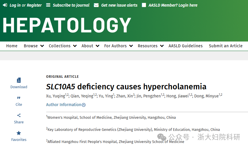 2024年7月10日,浙江大学医学院附属妇产科医院董旻岳团队在国际肝病学TOP期刊Hepatology(中科院一区)杂志上在线发表了题为《SLC10A5 Deficiency Causes Hypercholanemia》的研究论文(图1),通过基因编辑小鼠(包括基因敲除小鼠和点突变小鼠)、细胞实验和高效液相色谱质谱技术等分子生物学实验,首次阐述了SLC10...